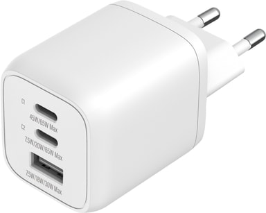 • Sandstrøm 65W 3-port GaN PD wall charger (white)