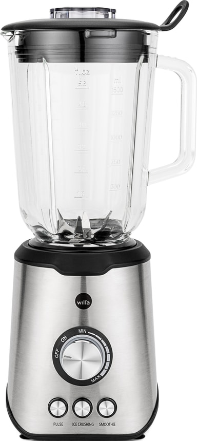 1.000-watt Wilfa blenderen BLPS-1000 har en 1,5-liters glasskål og håndterer let frugt, grøntsager, nødder og is. Den tilbyder trinløs hastighedskontrol sammen med turbo- og pulsfunktioner for alsidig og effektiv blanding.Læs mere om produktet