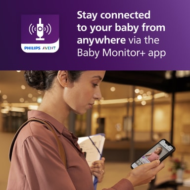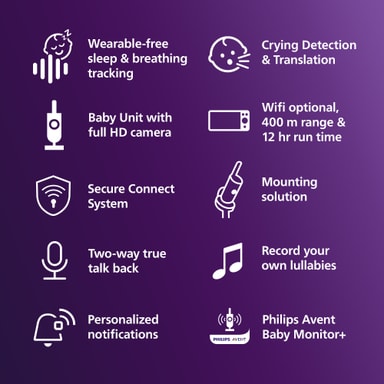 Secure Connect-systemet garanterer en privat, krypteret forbindelse mellem babyenheden, forældreenheden og Baby Monitor+ appen. Dette sikrer pålidelig og sikker overvågning uden forstyrrelser.