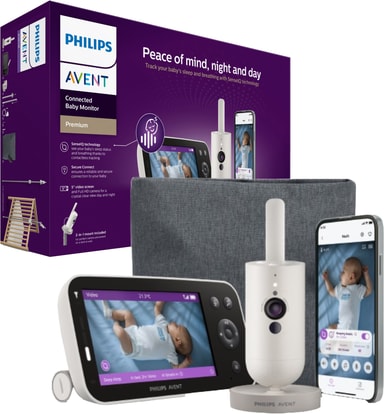 Philips Avent Premium babyalarmen SCD971/26 overvåger dit barns søvn og vejrtrækning med SenseIQ og lader dig holde øje med dem på den 5" store forældreenhed eller Baby Monitor+ appen og den hjælper med at tolke gråd med grådoversættelse.Læs mere om produktet