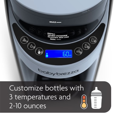 Baby Brezza Formula Pro Advanced sutteflasken FRP0046EU vil lave en perfekt flaske modermælkserstatning til din baby på ingen tid. Ingen grund til at måle eller bekymre sig om temperaturen længere. Du skal blot vælge mellem 60 til 300 ml formel og en af tre temperaturindstillinger, og lad formelproducenten gøre alt arbejdet for dig.