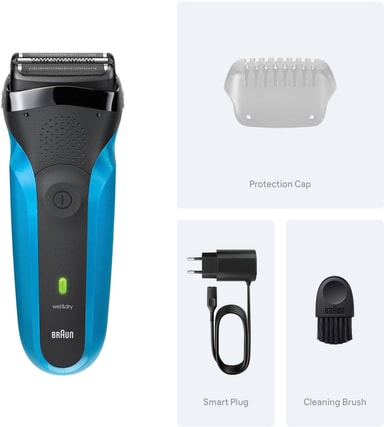 Braun Series 3 er designet til både våd og tør brug og tilbyder vandtæt alsidighed til alle dine barberingsbehov.