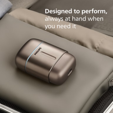 Barbermaskinen har et trådløst, kompakt design, som gør den nem at bruge hvor som helst uden at være bundet til en stikkontakt. En simpel swipe-betjening lader dig tænde og slukke barbermaskinen nemt, hvilket bidrager til dens elegante og intuitive design.