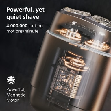 Barbermaskinen har dobbelte SteelPrecision-blade, der klipper hår effektivt i alle retninger, kombineret med 4D flex-hoveder, der følger ansigtets konturer.