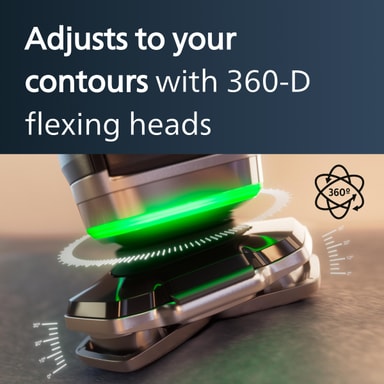 Fang hår tæt på din hud med præcision og komfort med barbermaskinens 360° bøjningshoveder og Dual SteelPrecision-blade.