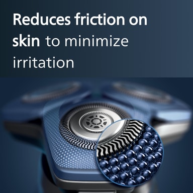 Denne belægning anvender 250.000 små perler på overfladen af barbermaskinen for at mindske den samlede friktion, når du barberer dig.