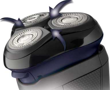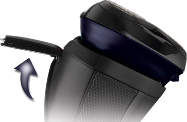 Bøjelige blade med to spor: Barbermaskinen har dobbeltsporede blade, der fanger hår selv på svært tilgængelige steder. De bøjelige blade reagerer på dit ansigts konturer og sikrer en tæt barbering på halsen og hagen. Få en ren barbering uden besvær med denne barbermaskine.