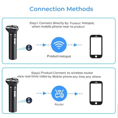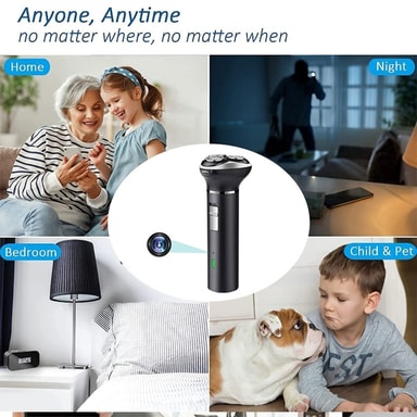 • Shaver indbygget HD 1080P Motion detection WiFi-kamera med 64 GB hukommelseskort