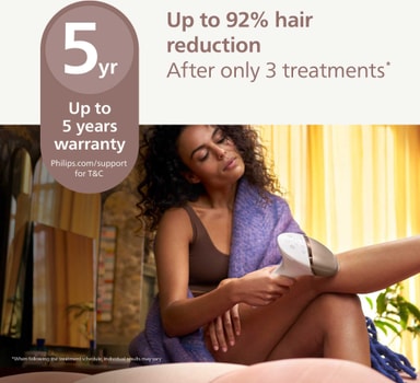 Philips tilbyder professionel hårfjerningsbehandling i dit hjem. IPL (Intense Pulsed Light) forhindrer hår i at vokse, hvilket sikrer langtidseffekt.