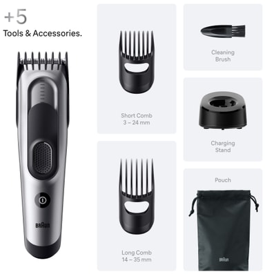 Med Braun Series 7 hårtrimmer HC7590 kan du få en frisk frisure, når du har brug for det. Og uden at bestille tid. Dette pålidelige apparat har 50 minutters brugstid, 17 længdeindstillinger og en praktisk Memory SafetyLock.Læs mere om produktet