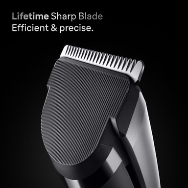 Brauns Serie 7-hårtrimmer inkluderer et Lifetime Sharp-barberblad, der gør hårtrimning derhjemme nemt og hurtigt uanset hårets længde eller tykkelse.