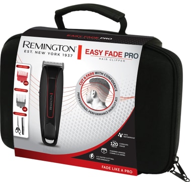 Få en professionelt udseende og ubesværet klipning med Remington Easy Fade Pro hårtrimmeren HC550. Den kommer med diverse typer tilbehør såsom 10 fade-trimmerhoveder, 9 blandede trimmerhoveder og en brugstid på op til 120 min. på en enkelt opladning.Læs mere om produktet