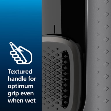 Philips næsehårstrimmeren er designet til at passe perfekt i hånden, så du kan trimme håret i ørene, næsen samt øjenbrynene. Det teksturerede greb sikrer perfekt greb, selv når det er vådt.