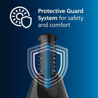 Denne næsehårstrimmer er designet til at forhindre uønsket hudirritation. Protective Guard-systemet er et cover hen over skærene, så din hud aldrig kommer i kontakt med dem.
