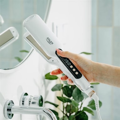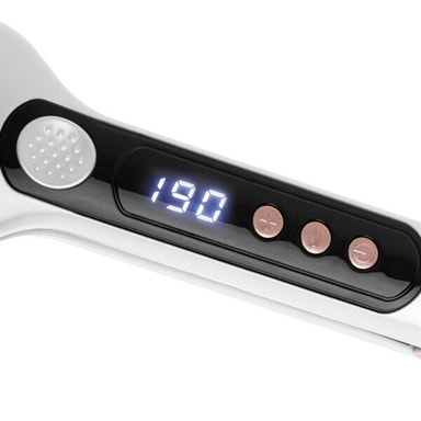 Dette brede glattejern giver dig mulighed for at tilpasse temperaturen til din hårtype takket være de syv forskellige temperaturindstillinger. Det tydelige LCD-display gør det nemt at overvåge og justere temperaturen under brug. Keramiske plader sikrer en jævn varmefordeling, hvilket minimerer risikoen for hårskader og sikrer en jævn stylingoplevelse. De brede plader gør det muligt at glatte større sektioner af håret på kortere tid, hvilket sparer både tid og kræfter.