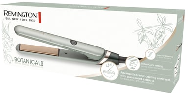Sæt en skarp frisure, der skinner med Remington Botanicals glattejernet S5860. Den har avancerede, keramisk belagte plader med plejende plantebaserede ekstrakter, 15 sek. opvarmning, 10 varmeindstillinger og LCD-skærm.Læs mere om produktet