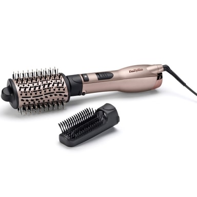 Den har 2 utbytbara borstar som slätar ut och ger håret volym och form, samt ett avancerat joniserande system som motverkar frissigt hår, så att du kan skapa en perfekt finish.