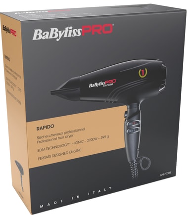BaByliss PRO Rapido hårtørreren BAB7000IE er en lynhurtig og ultralet hårtørrer, der tager sig af dit hår på ingen tid. EDM Technology-motoren er udviklet i et samarbejde med Ferrari og sikrer en professionel ydeevne og lang levetid.Læs mere om produktet
