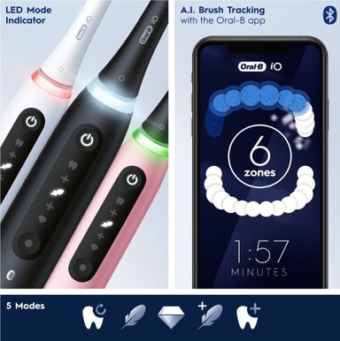 Oplev Oral-B’s mest avancerede iO-teknologi, der giver dig en effektiv rens og en behagelig børsteoplevelse. Tandbørsten er skånsom mod tandkødet, støjsvag i brug og minder dig om at skifte børstehoved hver tredje måned, som anbefalet af tandlæger.