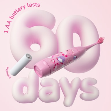 Den elektriske tandbørste kører på et enkelt AA-batteri (medfølger tandbørsten) og holder op til 60 dage.