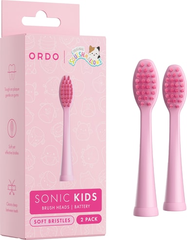 Denne 2-pak Ordo Sonic Kids Squishmallows Auggie med tandbørstehoveder 44918 er designet med bløde børstehår og skånsom mod følsomme gummer og voksende tænder. Tandbørstehovederne er kompatible med Ordo Kids genopladelige tandbørster.