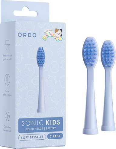 Denne 2-pak Ordo Sonic Kids Squishmallows Samir med tandbørstehoveder 44919 er designet med bløde børstehår og skånsom mod følsomme gummer og voksende tænder. Tandbørstehovederne er kompatible med Ordo Kids genopladelige tandbørster.