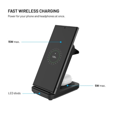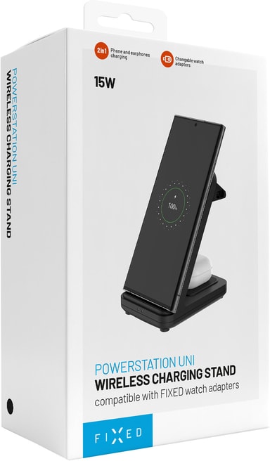 • Fixed 2in1 Universal trådløs ladestation (sort)