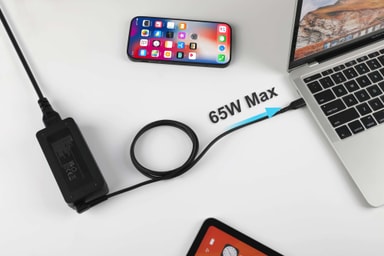 Denne Logik 65W universaloplader har en effekt på op til 65W og en USB-C-forbindelse og sikrer hurtig og effektiv opladning af alle dine enheder.