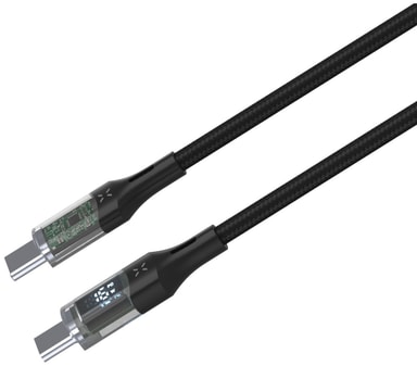 Fast 100W USB-C opladningskablet 1,2m leverer hurtig opladning med Power Delivery 3.0, gennemsigtige stik med LED-display, slidstærk tekstilfletning og effektiv 480Mbps dataoverførsel, komplet med kabelorganizer og trækstrop.Læs mere om produktet