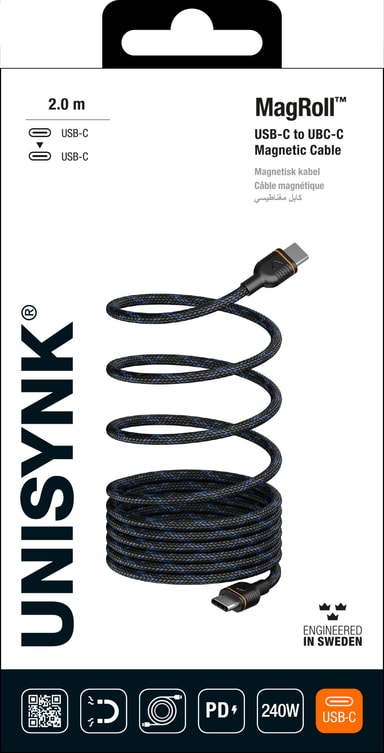 • Unisynk MagRoll Magnetic 240W USB-C kabel (2m)