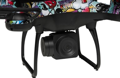 Kamera: Onboard videokameraet kan optage videoer i 720p HD-opløsning. Videoerne gemmes på et mikroSD-hukommelseskort i dronen (sælges separat).