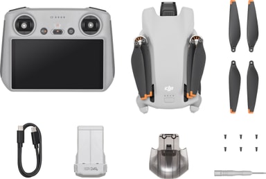 Den super lette DJI Mini 3 drone komprimerer den meget succesfulde foldbare design fra sine søskende til et mindre chassis, der vejer kun 249 g ved takeoff. Trods dette er den udstyret med 3-akset stabiliseret kamera med 4K HDR videooptagelse, langdistance live videotransmission og nem betjening. Dronen leveres med fjernbetjening inkluderet.