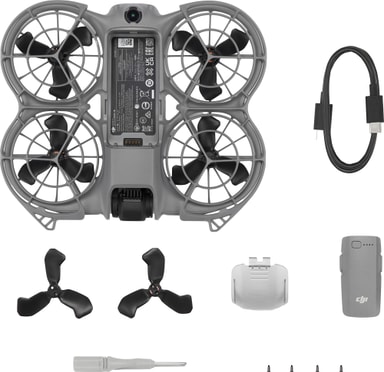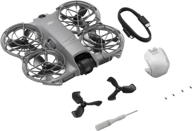 DJI Neo 2 dronen har et letvægtsdesign på 151 g, der optager 4K/100 fps video med en 2-akset gimbal. Funktionerne omfatter omnidirektionel forhindringssensering, ActiveTrack, 49 GB intern lagring og 10 km O4+ transmission.