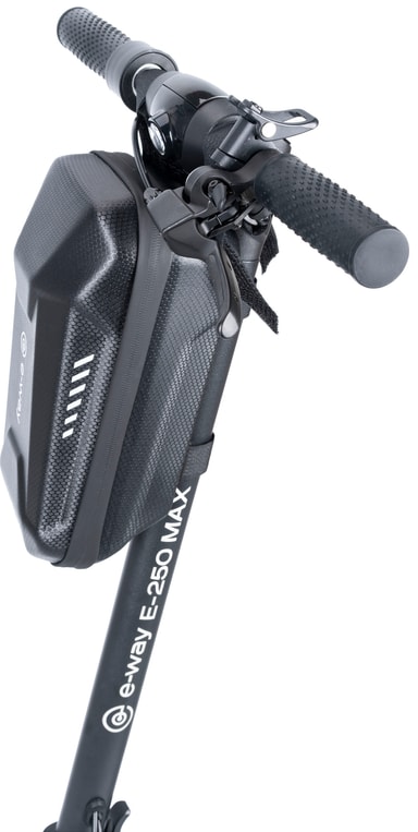 E-way tasken til elektrisk løbehjul 601436 har et letvægtsdesign med en hård skal, der vil hjælpe dig på dine daglige ture. Det vandtætte stof gør det muligt at køre selv i let støvregn, således at dine ejendele holder sig sikre og tørre. Der er derudover en netlomme på indersiden af tasken, som passer til din telefon, dine nøgler eller andre mindre genstande. Tasken passer til alle E-way elektriske løbehjul, og du kan nemt fastgøre den til dit elektriske løbehjul med de fire sikre stropper.