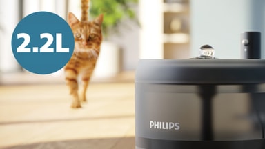 Vandfontænen rummer 2,2 liter vand, hvilket giver en konstant strøm, der holder din kat hydreret og opmuntrer den til at drikke mere i løbet af dagen.
