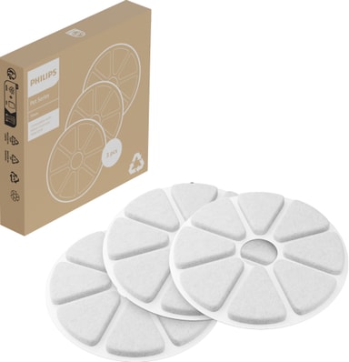 Philips Pet Series vandfontænefilter PAW3210/02 indeholder 3 filtre og holder din kats vand friskt og rent med aktivt kul og ionbytningsteknologi. Udskift hver 30. dag for at opnå de bedste resultater.Læs mere om produktet