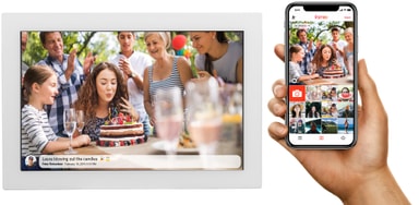 Vis alle dine minder frem med denne digitale Denver PFF 10,1" fotoramme. Det er nemt at dele dine stories på de sociale medier, men måske har du et par familiemedlemmer, der endnu ikke har en konto. Den digitale fotoramme fra Denver Frameo sørger for, at hele familien kan se med. Ejeren af fotorammen vælger hvem der har adgang til billederne, og du kan vælge mellem et interval 10 sekunder og 30 minutter for skiftning af billederne. Det er muligt at sikkerhedskopiere billederne til et SD kort eller at uploade dem til fotorammen.