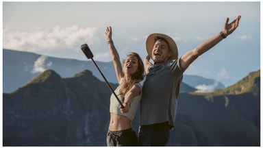 Udnyt den flyvende kameraeffekt med Invisible Selfie Stick. Kameraet har en indbygget algoritme, der automatisk fjerner stangen fra optagelserne, så det ser ud som om kameraet svæver over dig.