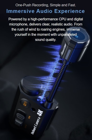 Runcam her med et hjelmkamera med opp til 6 timer batteritid. Dette kameraet kan justeres 90 grader ved å rotere hodet, i tillegg er feste fleksibelt slik at du kan tilpasse filmingen slik du ønsker. Runcam Helmet Camera 4K kan enkelt synkroniseres med mobilen for sanntids forhåndsvisninger. Pakken inneholder 1 velcro brakett og 1 slider bracket som gir deg ulike festemuligheter.