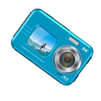 5K vandtæt digitalkamera med dobbeltskærm, perfekt til undervandsfotografering og selfies. Med 16x zoom og høj opløsning er det ideelt til rejser og eventyr. Optag fantastiske videoer og billeder i høj kvalitet.Læs mere om produktet