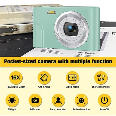 Tag skarpe billeder: Et digitalkamera, som er nemt at bruge, med 48 megapixel opløsning. Det giver dig mulighed for at tage skarpe billeder og videoer uden besværet med avancerede indstillinger. Det indbyggede udfyldningslys hjælper dig med at tage billeder i høj kvalitet selv under dårlige lysforhold.