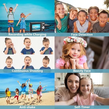 Smarte funktioner: Få bedre billeder med flere smarte funktioner. Dette minikamera understøtter funktioner som anti-rystelser, ansigtsgenkendelse, smilgenkendelse, kontinuerlig optagelse og selfie-timer. Brug pause-funktionen for at holde pause, mens du optager eller afspiller videoen.