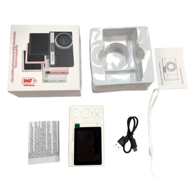 Bærbar og sjov: Tag dette kompakte og lette digitalkamera med dig overalt takket være dets lommevenlige størrelse og retrodesign. Den 2,4-tommers LCD-skærm gør det nemt at indramme dine billeder og gennemse dine fotos og videoer. Med indbyggede spil giver dette kamera underholdning på farten. Kameraet understøtter 13 sprog, hvilket gør det tilgængeligt for brugere over hele verden. Det langtidsholdbare batteri giver op til 180 minutters kontinuerlig brug, hvilket sikrer, at du aldrig går glip af et øjeblik. Dette digitalkamera er den perfekte ledsager til rejser, fester og hverdagsoplevelser og tilbyder en sjov og praktisk måde at fange og dele dine oplevelser på.