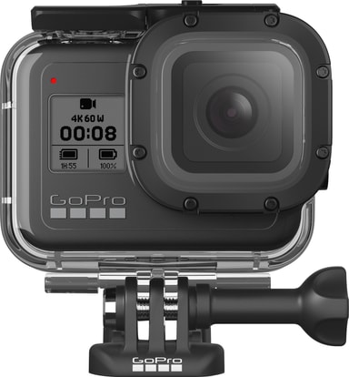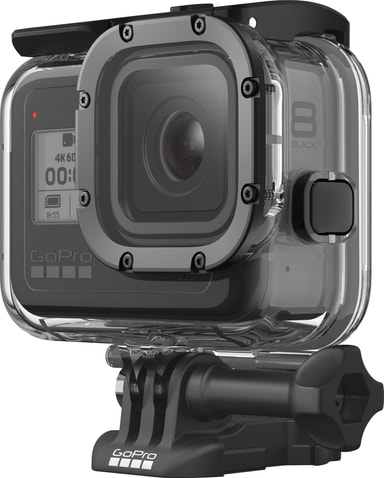 Dette GoPro vandtætte etui giver en god beskyttelse til dit HERO8 actionkamera, uanset om du dykker, står på ski eller dyrker en form for ekstremsport. Etuiet leveres med 2 vandtætte baglåger , der kan bruges med Floaty. Etuiet har en flad glaslinse, der sikrer skarpe billeder både over og under vand.
