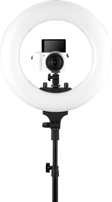 Dette Wistream Halo 300 Ringlys kaster en klar og ensartet belysning på hele dit hjemmestudie takket være det ringformede design. Lystemperaturen kan justeres fra den kølige 5.600k til den varme 3.200k afhængig af dine præferencer.