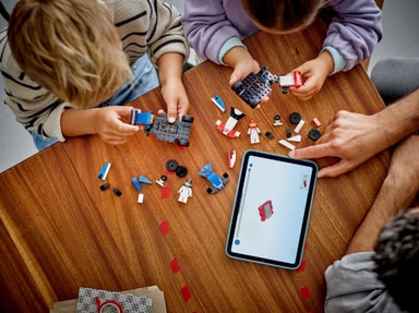 Det enkle byggesæt med F1-legetøjsbiler omfatter et LEGO startklodselement, billedguide og 3D-vejledning i LEGO Builder appen – en digital byggehjælp med intuitive værktøjer, så børn kan zoome ind på, dreje og se modeller fra alle vinkler, mens de bygger.