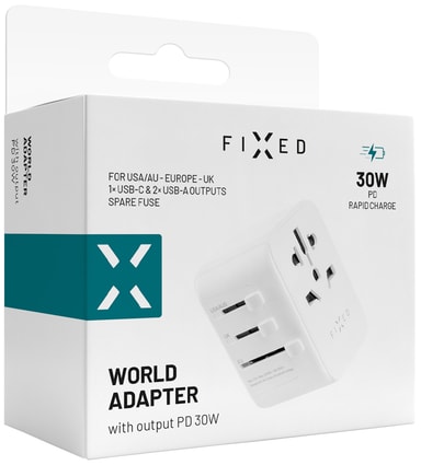 Med denne Fixed World 30W rejseadapter kan du holde din enheder opladet og strømforsynet, uanset hvor du er. Adapteren er kompatibel med EU, Britiske, Amerikanske, Japanske, Australske, Kinesiske og andre stikkontakter, for en nem rejseoplevelse.Læs mere om produktet