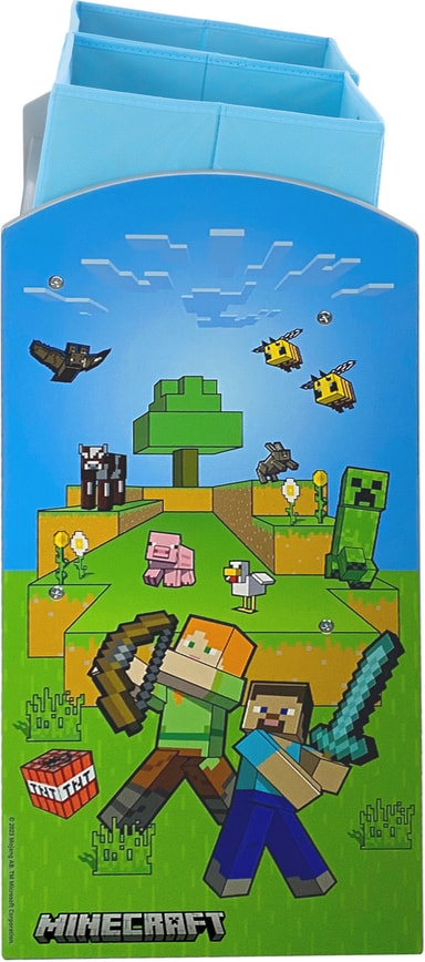 Phoenix Minecraft hylden forvandler dit barns værelse til et pixeleret eventyr med sit autentiske design, holdbare MDF-konstruktion og praktiske opbevaringsmuligheder, der omfatter fire små og én stor stofkasse til legetøj og bøger.