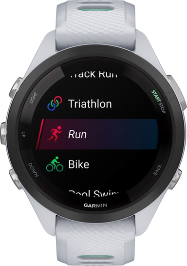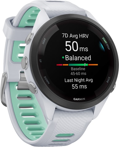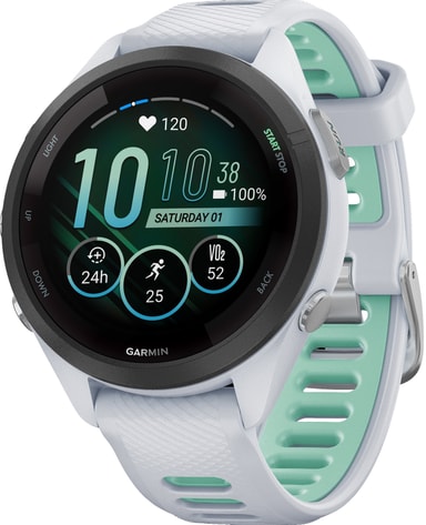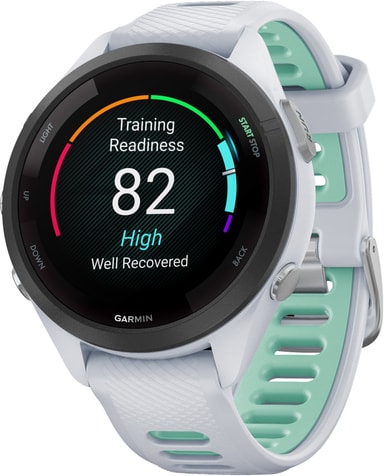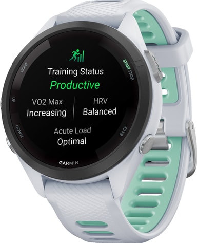 Forerunner 265S er udstyret med et stort bibliotek af træningsprogrammer og sportsapps, der giver dig en omfattende suite af trænings- og workout-funktioner. Over 30 aktivitetsprofiler giver dig statusopdateringer og detaljer direkte på dit håndled, mens du træner. Race Widget hjælper dig med at planlægge din løbsstrategi og tilbyder personlige træningspas baseret på løbsinput. Den giver tips og daglige foreslåede træningspas og giver en forudsigelse af løbstid, vejr, fitnesspræstation og mere for at holde dig motiveret. Acute Load-funktionen sammenligner dine seneste træningspas og giver tips om det optimale interval, mens Garmin Coach fungerer som din personlige træner med adaptive træningsplaner og personlige træningspas. Derudover leverer den håndledsbaserede løbedynamik en omfattende løberapport med indsigt i din løbekraft, jordkontakttid, skridtlængde og mere.
