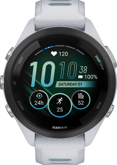 Forbedr præstation med dette Garmin Forerunner 265S sportsur. Med over 30 sportsprofiler, løbedynamik, træningsbelastning, løbswidget. 5ATM, en 1,1" AMOLED-skærm og 15 dages batterilevetid.Læs mere om produktet